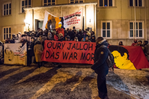 Wie im Fall Oury Jalloh, der am 7. Januar 2005 in einer Zelle des Polizeireviers Dessau in Sachsen-Anhalt verbrannt aufgefunden wurde, werden die Täter_innen in Uniform nie oder nur selten bestraft – meist zu geringen Strafen, damit sie weiter im Polizeidienst bleiben können. Der Dienstgruppenleiter zum Zeitpunkt von Oury Jallohs Tod war Andreas S., er wurde 2012, nachdem ein vorheriger Freispruch vom Bundesgerichtshof kassiert wurde, wegen fahrlässiger Tötung durch Unterlassung zu einer Geldstrafe von 10.800 Euro verurteilt. Als Mitglied der "Gewerkschaft der Polizei" (GdP) übernahm diese sowohl seine Geldstrafe als auch die Anwalts- und Gerichtskosten in Höhe von 155.000 Euro und 430.000 Euro.2