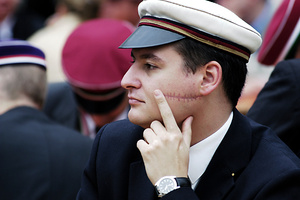 Schon zum traditionellen „Einzug der Präsidierenden“ in die Stadt waren wir vor Ort - im Gegensatz zu den Burschen der eigentlich präsidierenden „Landsmannschaft Thuringia“. Diese wurde kurz vor dem Convent wegen extrem rechter Vorfälle abgesetzt. Ein Erfolg vor allem der Recherchearbeit der „Autonomen Antifa Freiburg“.