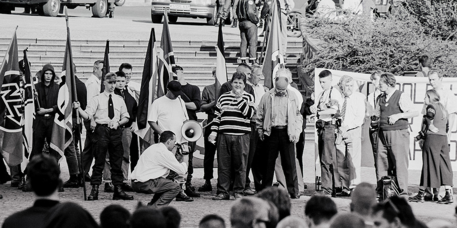 Der JN-Funktionär Holger Apfel als Redner beim "Rudolf Hess Marsch" 1993 in Fulda.