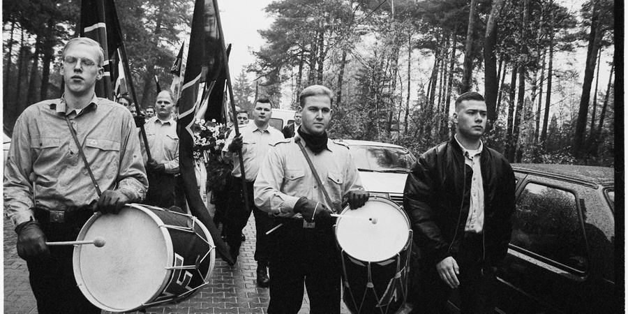 Aktivisten der NF beim Neonaziaufmarsch in Halbe 1991.