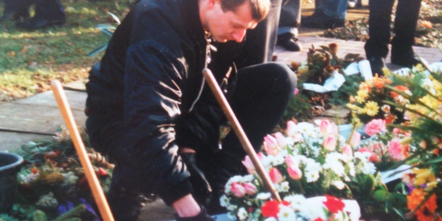 Der Neonazifunktionär Thorsten Schönrock bei der Beerdigung des Neonaziführers Michael Kühnen.