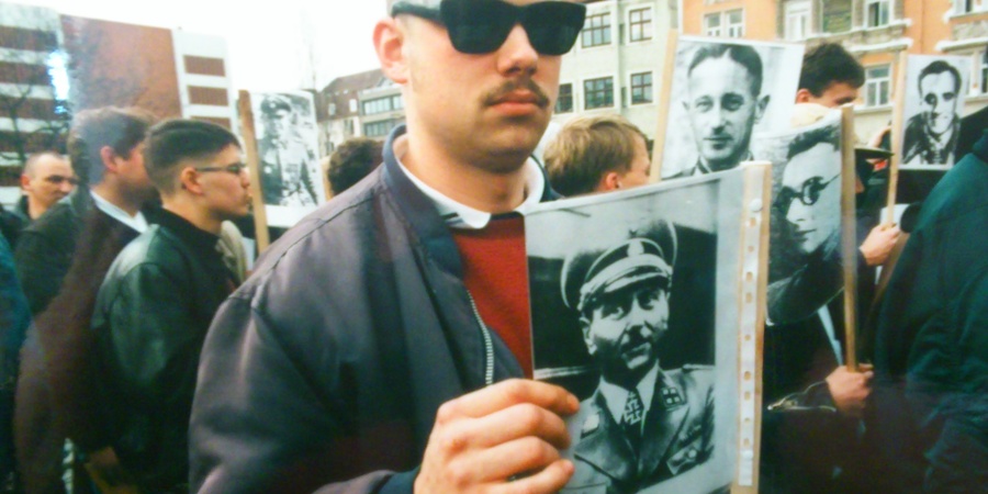 Der Soldatenfriedhof in Halbe bei Berlin ist dabei, ein weiterer Wallfahrtsort der neonazistischen Szene zu werden. Unter den 20.000 Soldaten, die noch in den letzten Schlachten in den Tod getrieben wurden, befanden sich zahlreiche Angehörige der Waffen-SS. Dies war kein Grund für die Vertreter des Verteidigungsministeriums, diesen Friedhof nicht im November letzten Jahres mit einer offiziellen Zeremonie aufzuwerten. Bundeswehrsoldaten gaben ein malerisches Bild ab, wie sie vor niedergelegten SS-Kränzen strammstanden. Die Veranstaltung am Nachmittag, angemeldet von den Strukturen der "Deutschen Kulturgemeinschaft" (DKG), war geprägt von dem Auftreten der jungen Neonaziszene aus der BRD wie Wiking Jugend (WJ), FAP und NF.