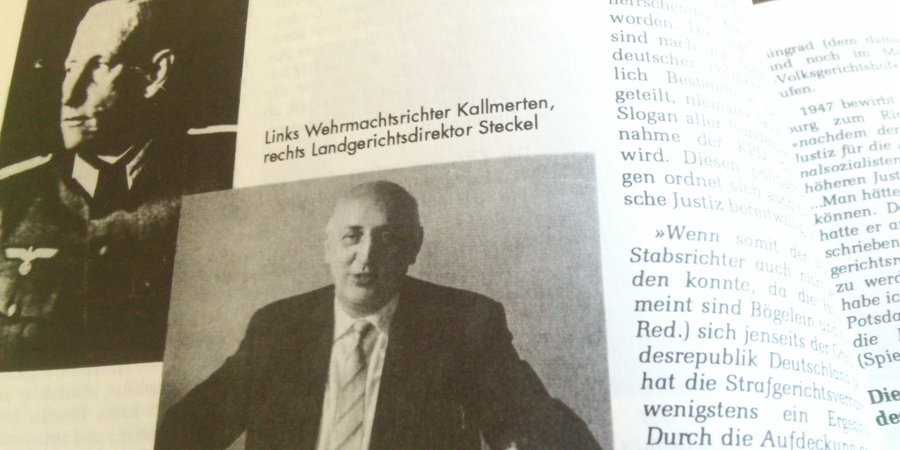 1951/52 saßen in der BRD viele der ehemaligen Juristen des »braunen Reiches« bereits wieder auf ihren angestammten Plätzen, als Staatsanwälte und Richter. Einer von ihnen war Landgerichtsdirektor Kurt Steckel, der 1951/52 den Vorsitz im Fall Kallmerten führte. Seine Biographie mag stellvertretend stehen für viele „Blut-Richter,“ die nach 1948 in der bundesdeutschen Justiz ihre Karriere fortsetzen konnten.