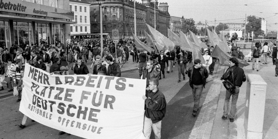Der Aufmarsch der "Nationalen Offensive" am 3. Oktober 1992 in Dresden.