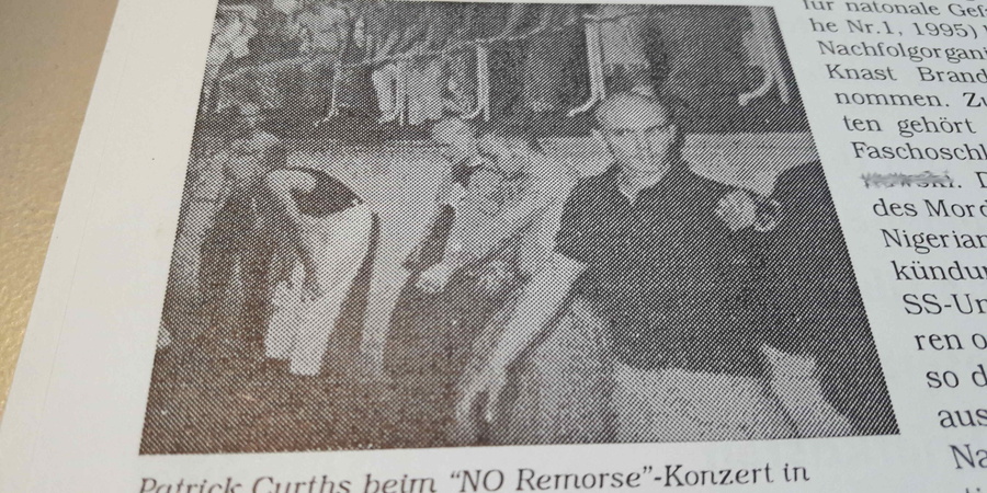 - 1Nachtrag: Die Gründung eines NPD-Ortbereichs Nauen (Brandenburg) fand nach Parteiangaben »in Anwesenheit des stellvertretenden Vorsitzenden der Brandenburger NPD, Patrick Cuhrts« statt. (Zündstoff # 1, 2003). Marcel Schilf zählt zu den Betreibern der dänischen Neonazi-Firmen NS-Records/NS88 Versand.