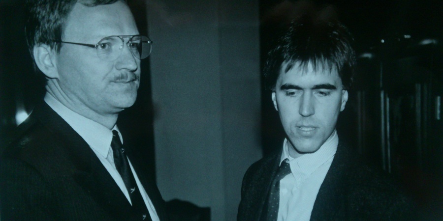 Götz Meidinger (links) und Dieter Stein (rechts) beim erfolglosen Versuch eine Presse-Konferenz durchzuführen.