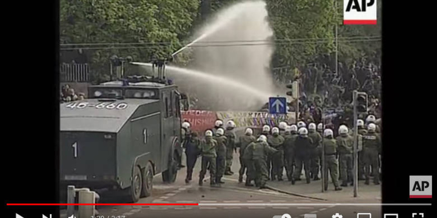 Wasserwerfer Einsatz gegen Antifas in Leipzig.
