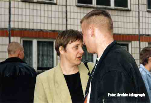 Für die einen "Blood & Honour" Aktivisten aus Rostock beim "Rudolf Heß Marsch" in Dänemark, für die anderen die "jugendlichen" Schützlinge "Olli" (rechts) und "Zappi" (mitte) aus dem Jugendclub MAX.
