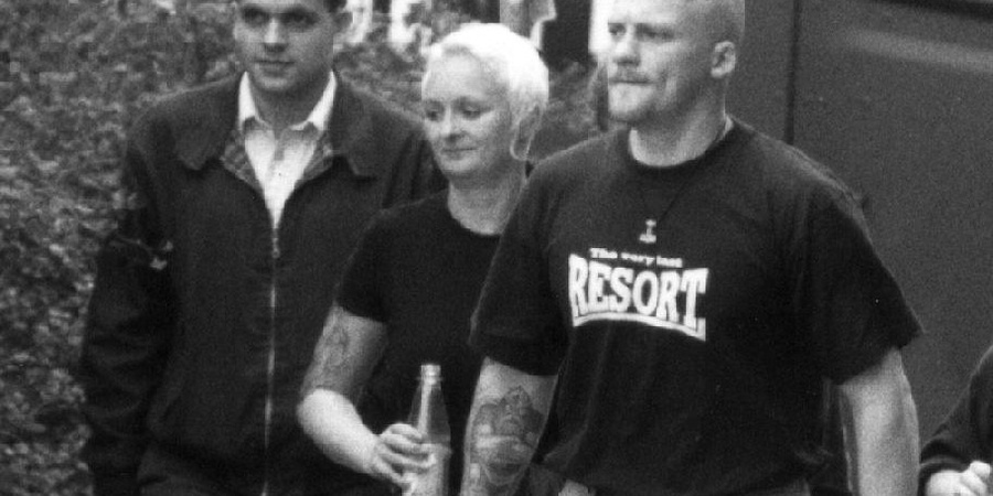 Zahlreiche bekannte deutsche Neonazi-Aktivisten reisten in Greve zum Aufmarsch an. Unter ihnen Rene Rodriguez-Teufer (l.) aus Hessen, Christiane Dolscheid (m.) und Tim Bartling (r.) vom "Club 88" in Neumünster.