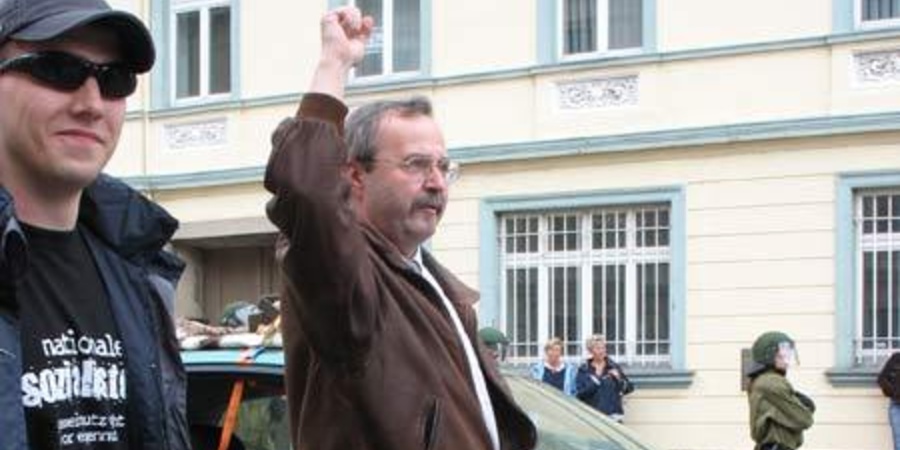 Michael Koth (rechts) bei einer Demonstration des "Kampfbund Deutscher Sozialisten" in Neuruppin.