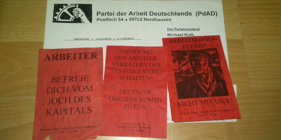 Propaganda Material der rot-braunen "Partei der Arbeit Deuschlands" (PdAD)