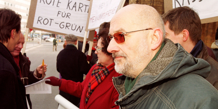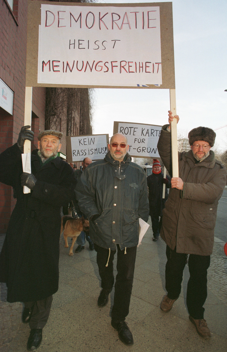 Horst Mahler (vorne) im Februar 1999 in Berlin bei seiner ersten Montagsdemonstration »Unser Land – Deutsche Revolution 2. Teil« gegen die Einführung der doppelten Staatsbürgerschaft.