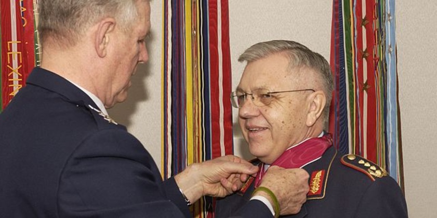 Der Bundeswehr-Generalleutnant Harald Kujat wird für seine Dienste in der NATO mit dem Orden "Legion of Merrit" der USA ausgezeichnet