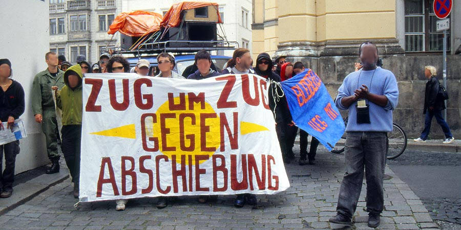 Angesichts derartiger Rahmenbedingungen war es für die rund 1.500 CampteilnehmerInnen sicherlich nicht einfach, den selbstgesteckten Zielen gerecht zu werden. Doch es gab viele einfallsreiche und gelungene Aktionen. Der staatliche Abschiebe-Rassismus in Form des Bundesgrenzschutzes (BGS) wurde zum Beispiel in einer fast dreistündigen Blockade der regionalen BGS-Leitstelle thematisiert. Für die Bevölkerung war das Camp fast täglich auf Zittaus Marktplatz präsent - sei es mit einem Live-Konzert oder mit vielen Kundgebungen. Selbst eine vom Oberverwaltungsgericht verbotene Kundgebung vor dem Landratsamt zur unmenschlichen Situation im Flüchtlingsheim von Zittau konnte spontan durchgesetzt werden. Eine Blockade vor der Polizeihauptwache, in der sich vier festgenommene AntifaschistInnen befanden, sorgte für Unmut, aber auch für Irritationen bei vielen Zittauerinnen - für das Camp eine selbstverständliche Reaktion auf die oft willkürlichen Polizeimaßnahmen, für sie ein befremdliches Verhalten. Mit witzigen Aktionen eroberte das Camp immer wieder die Schlagzeilen in der Lokalpresse: Durch die Kaperung der touristischen Schmalspureisenbahn durch den Räuberhauptmann Karasek und seine Bande - eine örtliche Robin-Hood-Variante aus dem letzten Jahrhundert, bei der unter anderem ein ungehinderter Flüchtlingstransport gefordert wurde, oder durch Nachtspaziergänge an der Grenze, einen Antifa-Autokonvoi, bei dem das Hotel »Neiße-Blick« in Ostritz, in dem die "Mitteldeutschen Tage" von der neonazistischen "Artgemeinschaft" stattfanden, mit Farbeiern verziert wurde und eine Demonstration in Görlitz entlang bekannter Neonaziadressen. NPD-Kader erhielten Hometrainer, neue Schlösser oder auch kübelweise Kot.