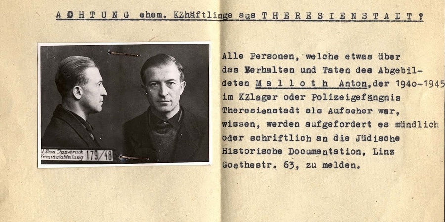 Anton Malloth, Mitglied der SS und des SD, wurde schon 1948 von einem außerordentlichen tschechoslowakischen Gerichtshof in Abwesenheit zum Tode verurteilt. Vorgeworfen wird ihm die Mißhandlung und Ermordung von Gefangenen im Gestapo-Gefängnis »Kleine Festung« Theresienstadt. In dem Urteil wird Malloth als »einer der grausamsten und gefürchtetsten Aufseher« beschrieben. An 750 Morden soll er zumindest beteiligt gewesen sein. Ehemalige Häftlinge bezeichnen Malloth als »ungewöhnlich erfinderisch beim Foltern« und als »Bestie«. Der NS-Verbrecher ist in Österreich zur Fahndung ausgeschrieben und steht auf der UN-Kriegsverbrecherliste, der »United Nations War Crimes Commission« (UNWCC). 1968 wurde das tschechische Todesurteil annulliert und Malloth hätte einen neuen Prozeß zu erwarten. Aber bislang waren die deutschen Behörden nicht bereit den staatenlosen Rentner, der in einem Pullacher Altenheim lebt, auszuliefern.