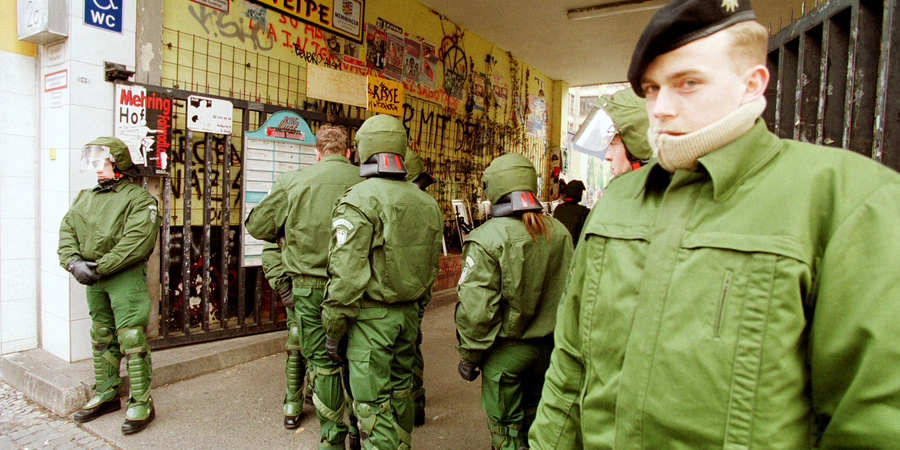 Grundlage für diesen Einsatz waren Ermittlungen nach § 129 a wegen Mitgliedschaft in der »terroristischen« Vereinigung Revolutionäre Zellen (RZ). Anschließend wurden alle drei Verhafteten zur Bundesanwaltschaft nach Karlsruhe verschleppt, wo ihnen die Haftbefehle verkündet wurden. Alle drei sitzen seitdem in Untersuchungshaft, Axel in Wuppertal, Harald in Düsseldorf und Sabine in Frankfurt. Während der vielstündigen Suche nach 80 kg Sprengstoff, Marke »Gelamon 40«, wurden im Mehringhof sämtliche Türen aufgebrochen, die GSG9 seilte sich in Versorgungs- und Aufzugschächten ab; Wand- und Deckenverkleidungen wurden zerstört, und BKA-Beamte, der Berliner Polizeipräsident und der zuständige Bundesanwalt tummelten sich in der Kneipe EX. Gefunden wurde natürlich nichts, dafür bleiben dem Mehringhof die Aufräumarbeiten und über 100.000 Mark Sachschaden. Mittlerweile ist klar, dass sich die Ermittlungen auf die Aussagen von Tarek M. stützen, dem selbst Rädelsführerschaft in den RZ vorgeworfen wird. Er nimmt für sich die Kronzeugenregelung in Anspruch, was bedeutet, dass er weitgehend straffrei bleibt, wenn er mit den Ermittlungsbehörden zusammenarbeitet und andere verrät. Außerdem wird er nach den kommenden Prozessen vermutlich ins Zeugenschutzprogramm des BKA aufgenommen und mit einer neuen Identität ausgestattet.