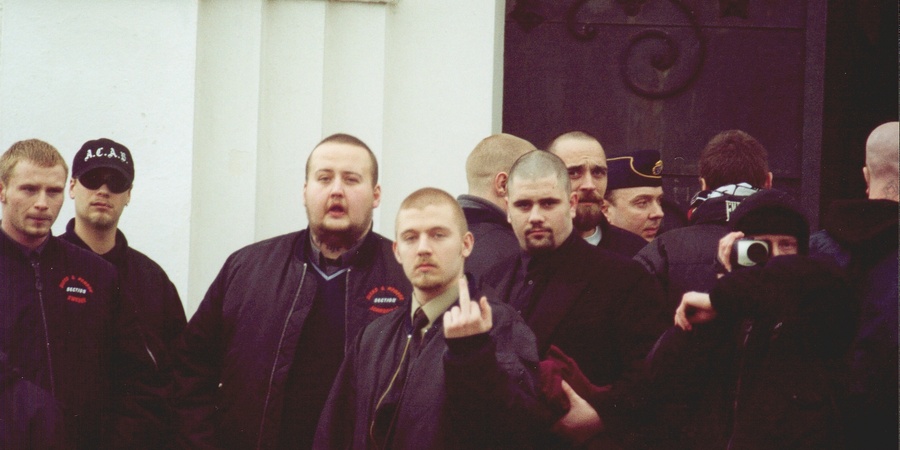 Neonazis bei der Beerdigung des Neonazi-Musik-Produzenten Marcel Schilf.