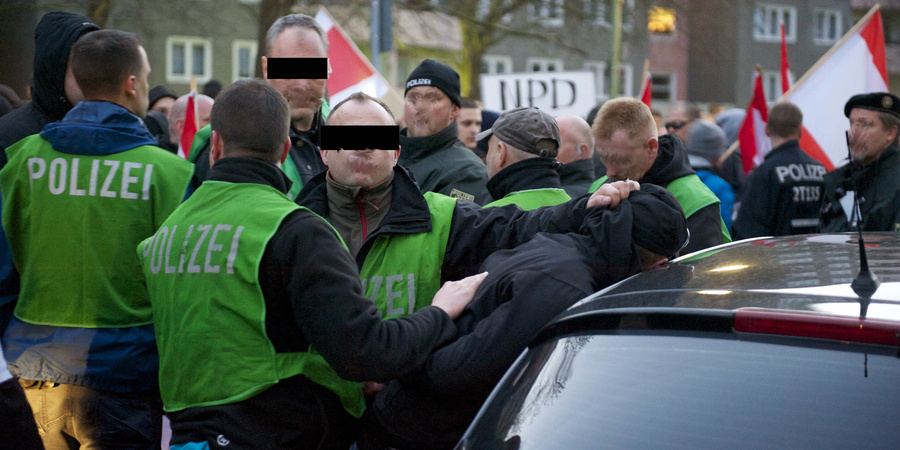 Berliner Polizeibeamte im Einsatz bei einer Neonazi-Demonstration.