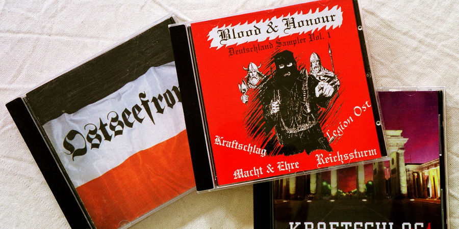 Neonazi-Musik-CDs werden mittlerweile professionell hergestellt. Hier besipielhafte RechtsRock CDs.