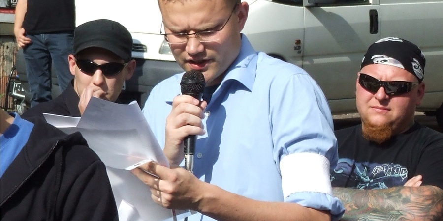 Phillip Valenta am 17. Juni 2008 in Halle bei einer JN-Kundgebung.