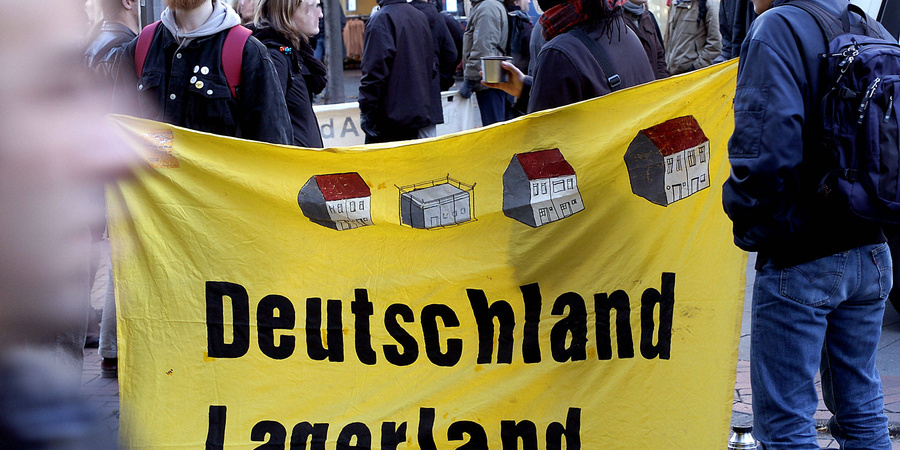 Antirassistischer Protest gegen die Unterbringung von Flüchtlingen in Sammellagern.