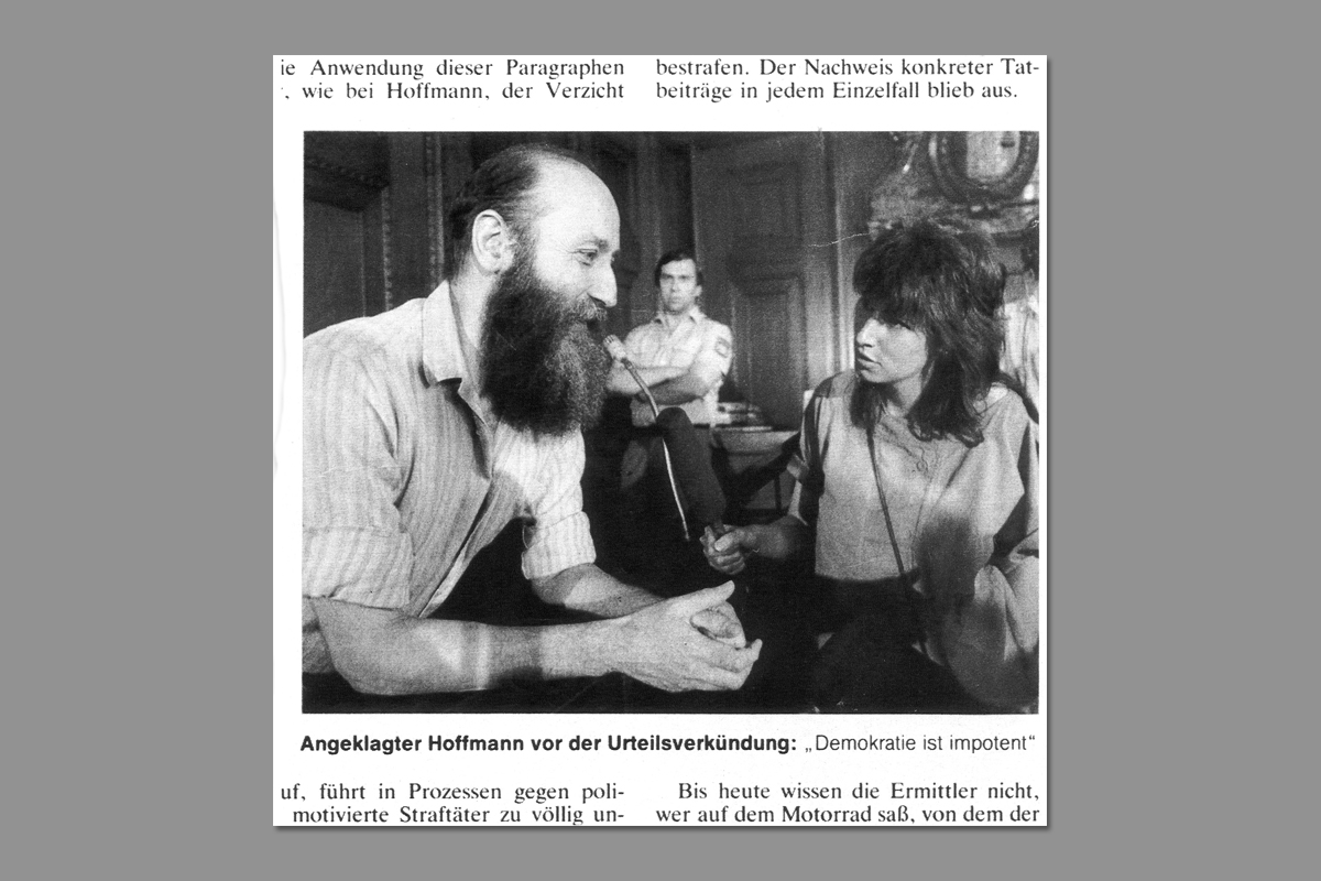 Auch hier führte die Spur zunächst zu Hoffmann. Der mutmaßliche Schütze war sein engster Gefolgsmann. Am Tatort wurde die Brille von Hoffmanns heutiger Ehefrau Franziska gefunden, die Tatwaffe gehörte dem »Chef«. Die Leiche des Tatverdächtigen wurde später im Libanon entdeckt. Es hieß, er habe Selbstmord begangen. Hoffmann kam damals davon. Einen Mordauftrag konnte ihm niemand nachweisen.