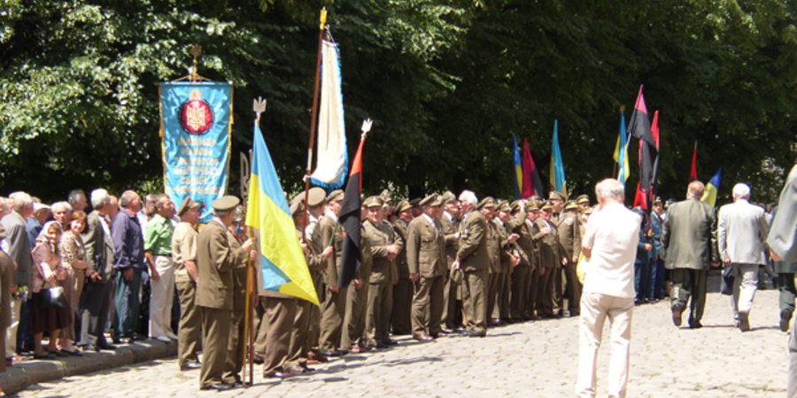 Auf dem Litschakivski-Friedhof in L‘viv liegen polnische und ukrainische Gefallene der militärischen Auseinandersetzungen um L‘viv von 1918/19. Die UNA-UNSO entfernte hier pressewirksam Inschriften auf polnischen Gräbern, da sie die polnische Kolonialpolitik verherrlichen würden. Seit einigen Jahren streiten sich polnische und ukrainische Regierungsstellen, Veteranenverbände etc., wie dieser Toten, vor allem der polnischen, gedacht werden solle. In erster Linie wird das Thema für die nationalistische, antipolnische Propaganda instrumentalisiert. Ein weiterer Anlass war der 60. Jahrestag des Massakers ukrainischer Nationalisten an Polen in Wolhynien am 11. Juli 2003: UNA-UNSO organisierte Kundgebungen vor den polnischen Konsulaten in der Ukraine unter der Parole: »Keine Entschuldigung für Wolhynien – Alles eine Folge der polnischen Kolonialpolitik« – diese monokausal erklärte »Folge« war das grauenvolle Abschlachten zehntausender Polen und das Abbrennen ganzer Dörfer.10