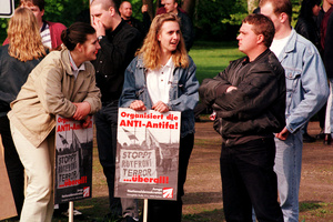 »Keine Berührungsängste, keine Kontaktallergien gegenüber Gleichgesinnten!«. So eindeutig beschrieb Roland Wuttke im letzten Jahr sein politisches Credo »Bewegung statt Partei« im neonazistischen Coburger Strategieblatt »Nation & Europa« (N&E). Keine Berührungsängste hatte Wuttke auch bei Martin Wiese und der »Kameradschaft Süd«. Mit diesen arbeitetet er bereits seit mehreren Jahren zusammen, um rechtes Gedankengut unter die Bürger und Bürgerinnen der Stadt München zu bringen. Denn schon seit längerem waren die Mitglieder der »Kameradschaft Süd« unter den Augen der Öffentlichkeit und somit eigentlich auch des Verfassungsschutzes aktiv für »Demokratie direkt« (DD).