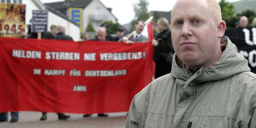 Tobias Thiessen (rechts) musste sich für die Zeitschrift "Zentralorgan" vor Gericht verantworten. Hier am 8. Mai 2005 bei einer Neonazi-Demonstration in Remagen.