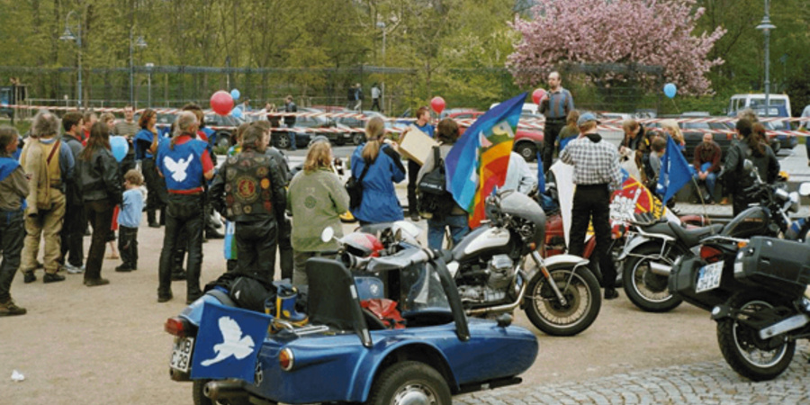 Unser Gesamtverband setzt sich oft inhaltliche Schwerpunkte. Im vergangenen Jahr war, bedingt durch den Irak-Konflikt, die Friedenspolitik. Wir sind da mit einer Karawane durch die BRD gezogen und haben da auf Treffen anderer Clubs, auf eigenen Aktionen und auf Friedensaktionen unsere Positionen vertreten. In diesem Jahr wollen wir uns weiter dem Thema Kriegsgefahr widmen, wo wir beispielsweise die geplante EU-Armee mehr thematisieren wollen. Verteidigungsminister Struck hätte ja gerne eine schnelle Eingreiftruppe, die überall in der Welt hinflitzen kann und wessen Interessen auch immer dort umsetzt. Es gibt clubübergreifende AG´s, die sich beispielsweise im Anti-Atom Bereich engagieren. Dort trafen wir auch auf einen anderen Motorradclub, der sich im Wendland in der Anti-Castor Bewegung betätigt. Die nennen sich IDAS, der wohl ein Gegenspieler des Castor in der griechischen Mythologie war. Ansonsten entwickeln wir Marburger derzeit für den Verband ein Konzept, wie wir uns den sozialpolitischen Herausforderungen stellen wollen. Aber da stecken wir noch in den Kinderschuhen. Aber viele Dinge geschehen oft spontan und hängen von aktuellpolitischen Ereignissen ab. Wir sind halt ein Motorradclub und keine Partei.