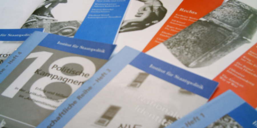 Seminare, Tagungen, Veröffent­lich­ungen und die Förderung von For­schungsarbeiten gehören zum selbst­gewählten »Aufgabenbereich« des Instituts. Im Rahmen dieser Vor­gabe veranstaltet es seit 2000 jeweils eine Sommer- und eine Winteraka­demie, 2001 kam das »Berliner Kolleg« hin­zu. Omnipräsent bei diesen verschiedenen Treffen und Tagungen sind die Gründungsmitglieder Dr. Karl­heinz Weißmann und Götz Kubitschek. Darüber hinaus ließ man Personen aus der extremen Rechten wie den Anti-Antifa-Schreiber der Jungen Frei­­heit Manuel Ochsenreiter, den ehemaligen Mitarbeiter der Repu­blikaner Michael Wiesberg oder den französischen Rechtsintellektuellen Alain de Benoist ihre Thesen präsentieren. Für den Brückenschlag in den Konser­vatismus sollte schon 2001 Mar­tin Hohmann sorgen, der im Rah­men der Sommerakademie 2001 einen Rede­beitrag unter dem bezeichnenden Titel »Strategie im Parla­men­ta­rismus« hielt. Neben solchen Tagung­en, auf denen neben der Verbreitung von inhalt­licher Position und Stra­tegie auch die Kontaktaufnahme für das Netzwerk eine wichtige Rolle spielten, ist es die Publizistik, über die das IfS wirken will. Hierzu erscheint eine Zeitschrift, eine Buchreihe und eine Reihe von Themenheften.