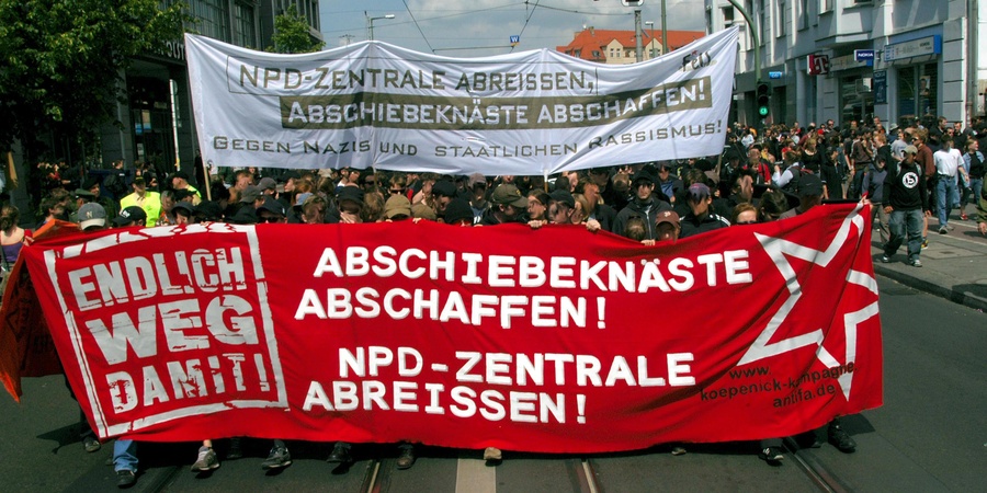 Trotz des Umstandes, dass NPD-Zentrale und Abschiebeknast immer noch stehen, konnten sie im Kontext der Berliner Linken thematisiert werden, so dass sich auch jüngere Antifa-Gruppen stärker mit Asyl und Antirassismus befasst haben. Es darf nicht vernachlässigt werden, dass sich gerade Jugendliche über Antifa- und Antira-Themen politisieren. Die Zusammenarbeit von Antifa- und Antira-Gruppen hat unerwartet gut funktioniert. Die Unterschiedlichkeit der Politik- und Praxisfelder kann damit jedoch nicht überwunden werden. Wir werden weiterhin dafür werben, beide Themenbereiche auch in Zukunft stärker zu verknüpfen, um Kontinuität und Synergieeffekte zu erzeugen sowie einen breiteren gesellschaftlichen Rahmen im Blick zu behalten.