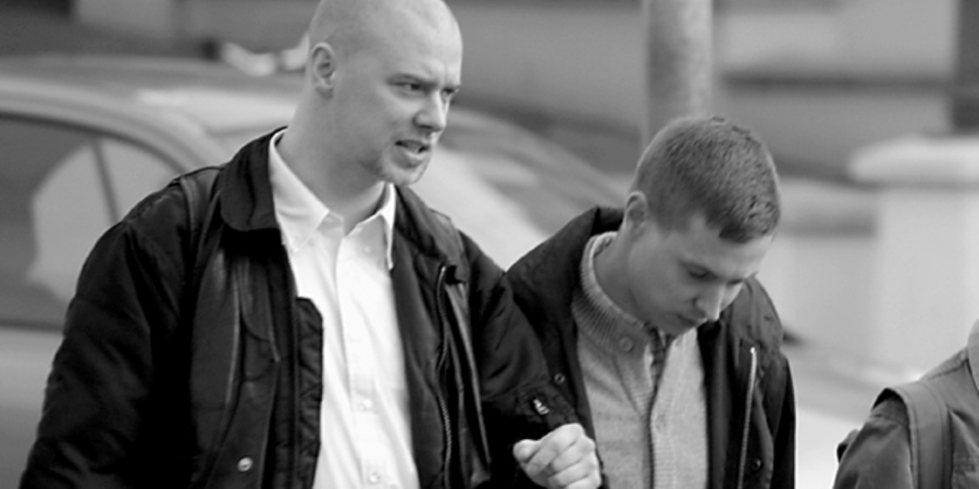 Die Angeklagten Alexander Willibald Bahls (Spreegeschwader) und Lutz Giesen auf dem Weg zur Urteilsverkündung