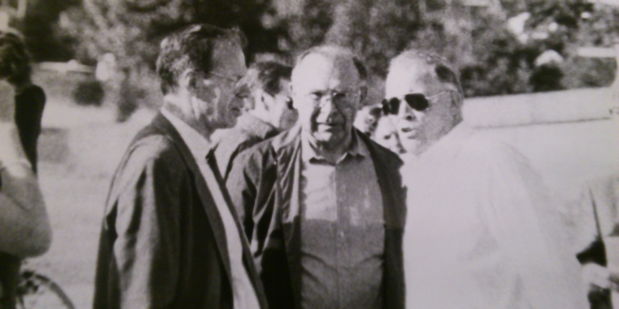 Die beiden Berliner REP-Funktionäre Klaus Weinschenk (rechts) und Otto Wenzel (links) zusammen mit Werner Deutsch (mitte) von der BDI auf einer REP-Kundgebung.