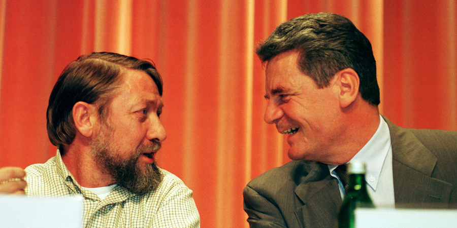 Auch ein Teil der Debatte um den Totalitarismus: Das Schwarzbuch des Kommunismus. Der Herausgeber und Mitautor des Schwarzbuch Stephane Courtois (links) und der Bundesbeauftragte für die StaSi-Unterlagen Joachim Gauck (rechts).