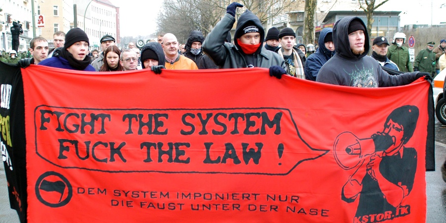 Ein Machtvakuum innerhalb der Berliner Neonazi-Szene, das durch den Rückzug tonangebender führender Kader der alten GdNF-Struktur (siehe AIB Nr. 52) entstanden ist, bedingt eine spezielle Form politischer Orientierung. Die führenden Protagonisten aus der Kameradschaftsszene sagen sich zunehmend von den dogmatischen extrem rechten kulturellen Mustern los und orientierten sich an den kulturellen Codes der linksradikalen autonomen Bewegung, die sie mit eigenen Ideologie-Fragmenten versetzen (siehe AIB Nr. 63). Sie treten u.a. unter dem Label »Autonome Nationalisten« auf. Da dieses Modell zunehmend bundesweit übernommen wird, soll an dieser Stelle ein erster Überblick zu diesem Neonazi-Label geboten werden.