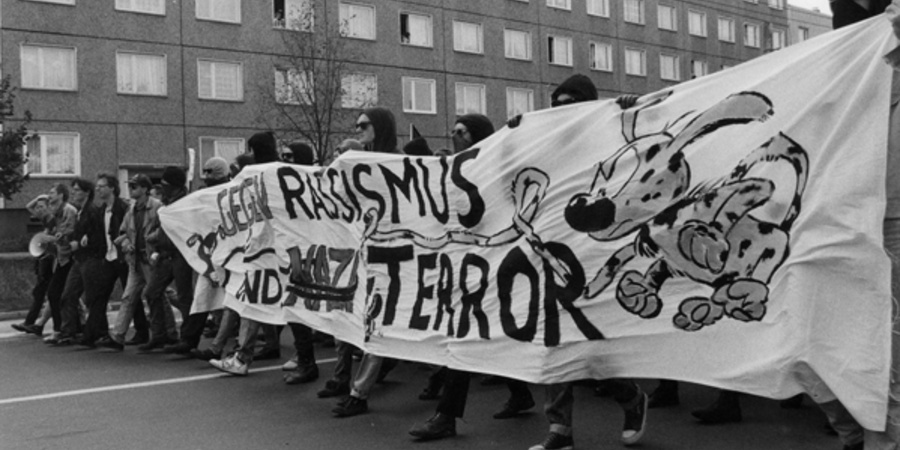Am 29. September 1991 demonstrierten AntifaschistInnen in Hoyerswerda gegen Rassismus und Ausländerfeindlichkeit