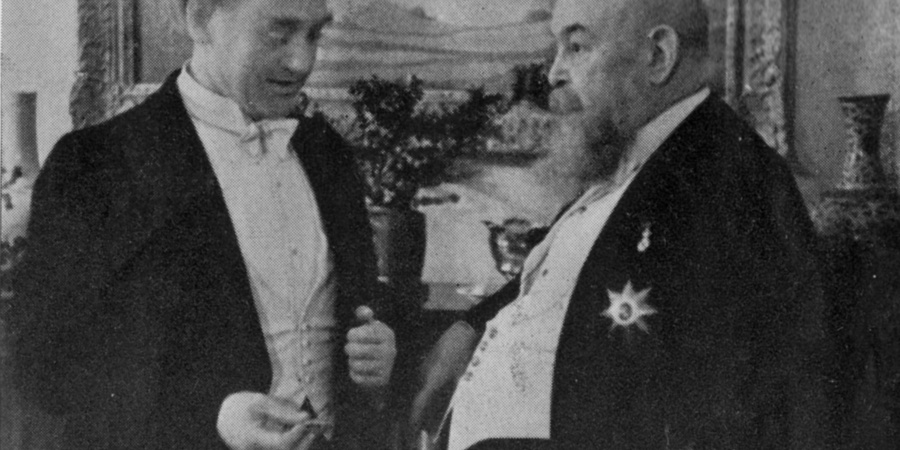 Oswald Pirow (links) und der ehemalige Generalkonsul des Oranje-Freistaats Hendrik Muller in Den Haag, 1938. , newspaper cutting; PD-EU-no author disclosure)