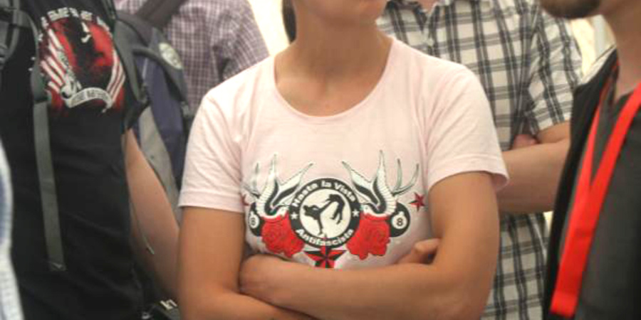 Die Anti-Antifa als Habitus. T-Shirt Motiv auf einer NPD Veranstaltung.