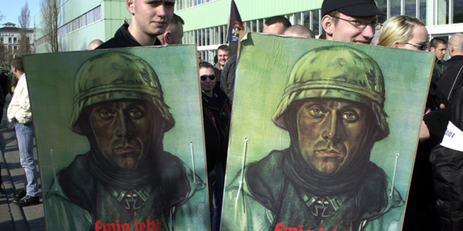 In Anbetracht dieser »offenen Fronten«, befinden sich extrem rechte Männer andauernd im Kampf, im Krieg. Denn Krieg ist dort, wo Männer unter sich sind, gleiches sich um Ehre misst. Dort, wo der totale Zusammenhalt im Ruf des Vaterlandes erträumt wird, pure Männlichkeit sich hinsehnt. Dementsprechend großen Raum findet der Bezug auf den historischen Nationalsozialismus in Person des angeblich sauberen, ehrhaften, treuen deutschen Soldaten. Da die historische Situation den offenen Kampf derzeit nicht zulässt, wird jeder Flyer-verteilende Schüler zum stählernen Systemfeind und Widerstandskämpfer empor erhoben. Den Rest erledigt ein Verbalradikalismus à la »Wir aber kennen den Terror des Systems und wir kennen dessen Angst vor der Explosionskraft unseres Kampfes.«