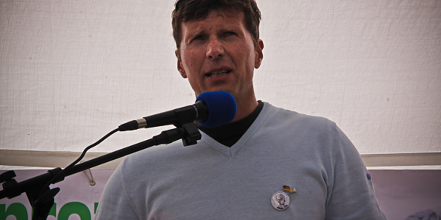 Stefan Herre, Gründer des rechten Blogs "PI News" bei einer Kundgebung 2010 in Berlin.