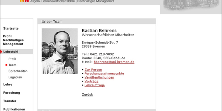 Der Stiftungsfunktionär Bastian Behrens auf der Webseite der Universität Bremen.