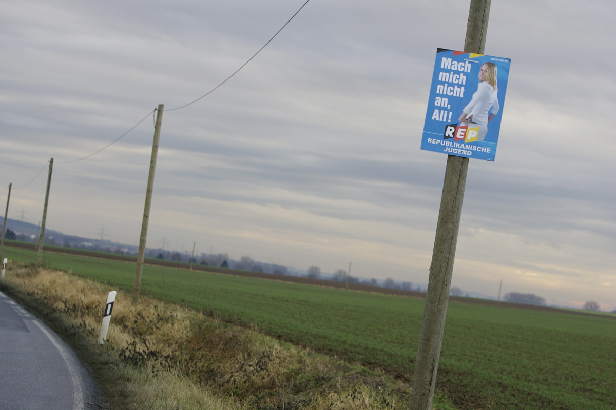 Die REPs bemühen sich auf Plakaten um ein jugendliches Image.