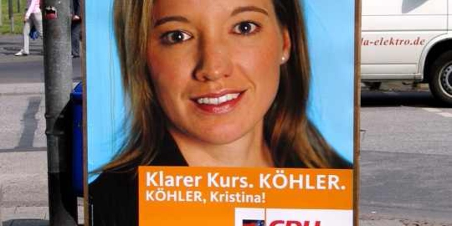 Wahlplakat von Kristina Köhler (jetzt Kristina Schröder) aus dem Bundestagswahlkampf von 2005 in Wiesbaden.