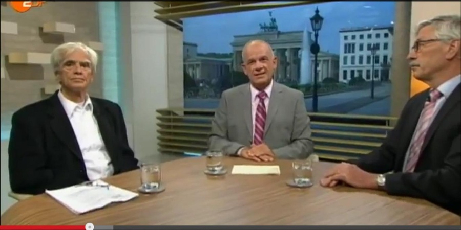 Peter Hahne (mitte) im ZDF-Fernsehgespräch mit Hans-Christian Ströbele und Thilo Sarrazin.