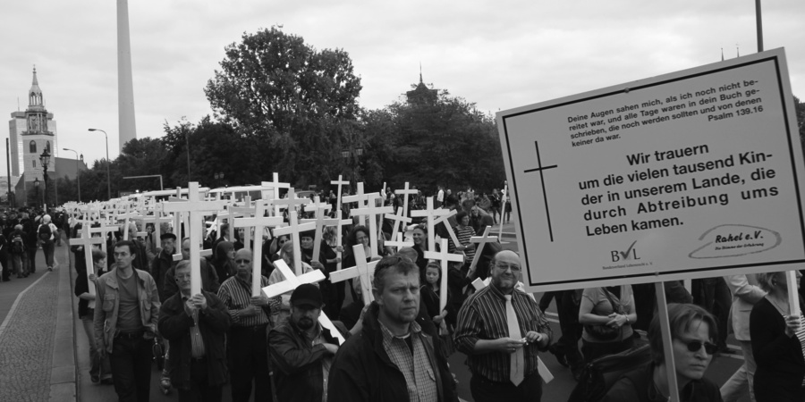 Seit 2002 ruft der »Bundesverband Lebensrecht« (BVL) alle zwei Jahre zum Protestmarsch »1000 Kreuze für das Leben« in Berlin auf. Als Vorbild gelten die riesigen Demos in den USA oder im »Opus Dei«-Stammland Spanien, wo jüngst Hunderttausende gegen Schwangerschaftsabbrüche demonstrierten. Ab diesem Jahr soll der Marsch in Berlin nun jährlich und nach internationalem Vorbild als »Marsch für das Leben« stattfinden. Das ranghohe Kirchenleute und Politiker dem Marsch ihre Grußworte sandten, belegt den zunehmenden Einfluß dieser Bewegung in der Gesellschaft.