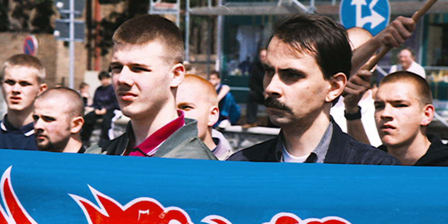 Axel Möller (2 v.r.) bei einem Neonaziaufmarsch am 14. Juni 1998 in Anklam.