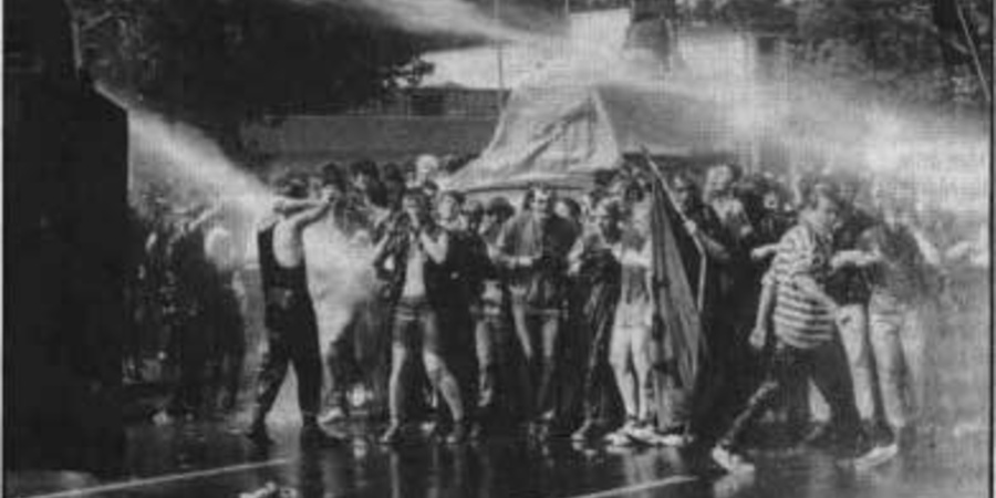 8. Juli 1989: Wasserwerfereinsatz gegen AntifaschistInnen in West-Berlin.