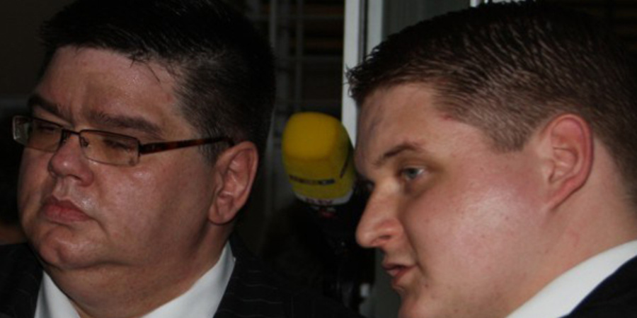 Das Scheitern ins Gesicht geschrieben – NPD-Pressesprecher Michael Robin Gunzel (li.) und JN-Bundesvorsitzender und Landtagskandidat (Listenplatz 3) Michael Schäfer am Wahlabend im Magdeburger Landtag.
