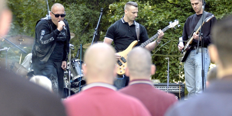 - 1Wir verwenden das als feststehenden Begriff etablierte Wort »RechtsRock«, um das gesamte Spektrum neonazistischer Musik zu bezeichnen. Unabhängig vom tatsächlichen Genre.